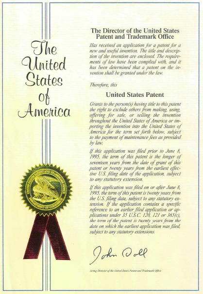 美国发明专利证书